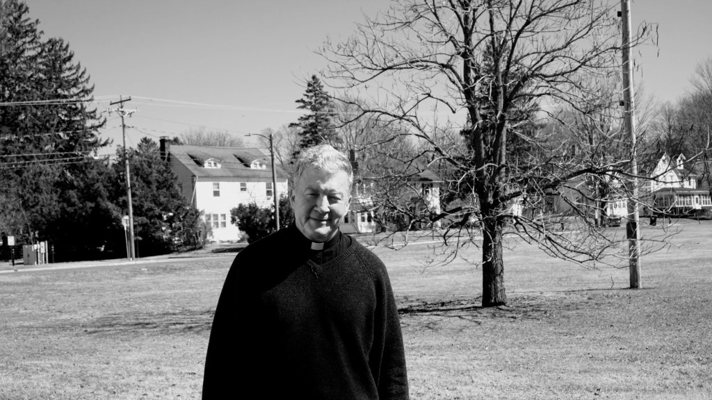 On a Lenten afternoon, Father Andrew More O’Connor pulled into the parking lot of St. Anthony’s Church in Pine Plains in a small green Fiat 500. Dressed in black, he stepped out of the car carrying a vase of white lilies. He set them down briefly as he unlocked the sanctuary door.